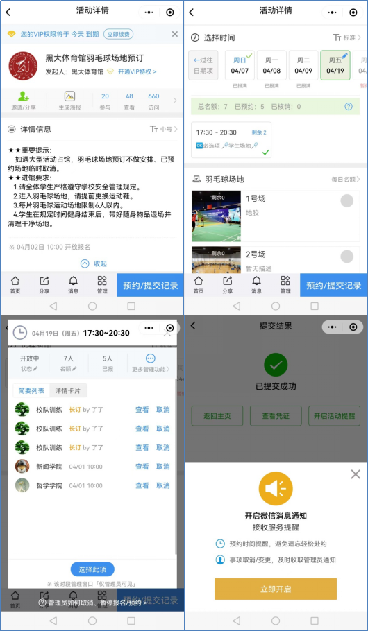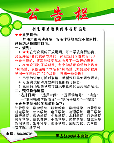 体育馆羽毛球场地小程序预订(学生)上线通知